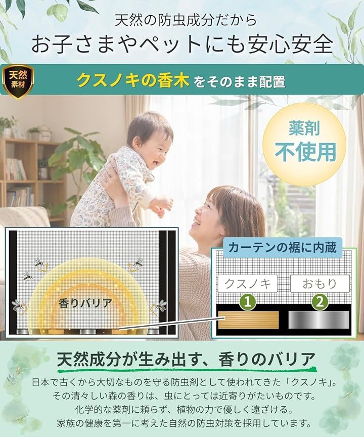 さらに下部にはクスノキの香木を配置し、天然成分による虫対策効果をプラス。