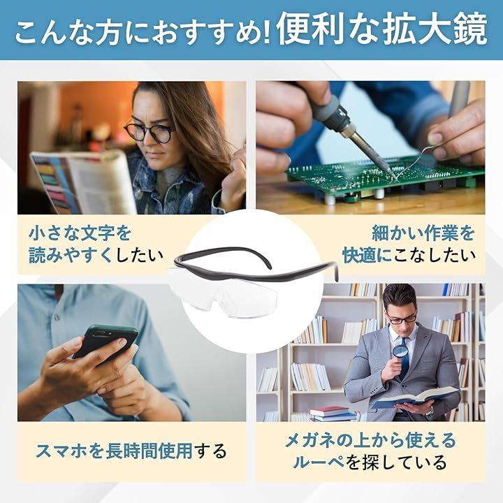 「こんな方におすすめ」 ・小さな文字をもっと読みやすくしたい方 ・細かい作業を快適にこなしたい方 ・スマホを長時間使用する方 ・メガネの上から使えるルーペを探している方