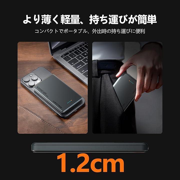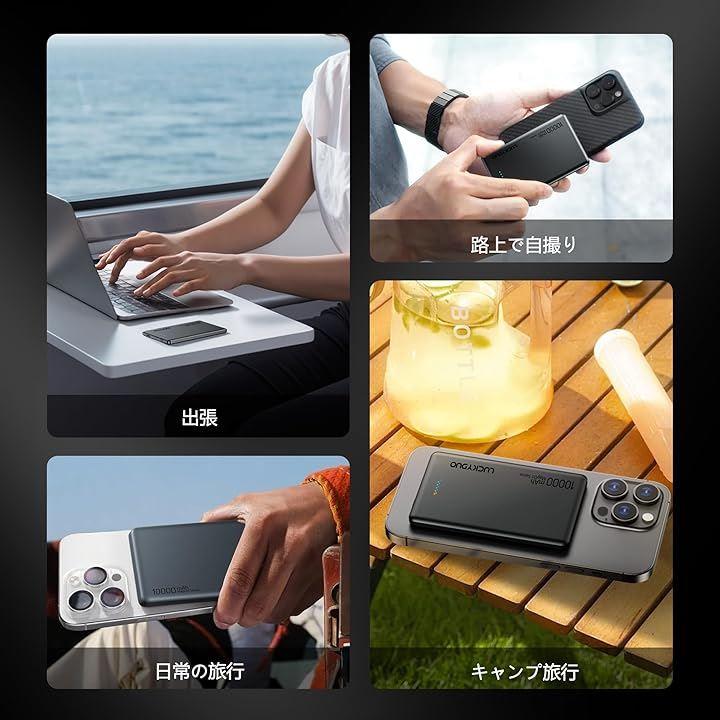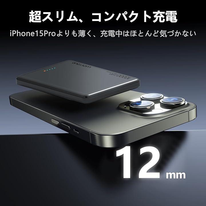 「PD20Wパススルー充電」20W USB-Cポート搭載のマグネット式モバイルバッテリー10000mAhは、iPhone 15 Proをわずか30分で50%まで急速充電できます。