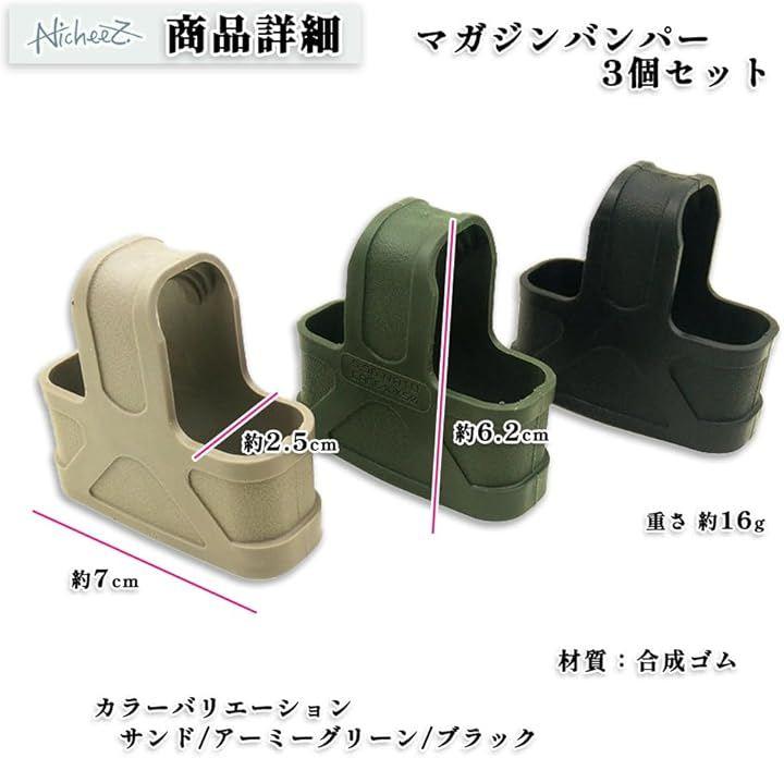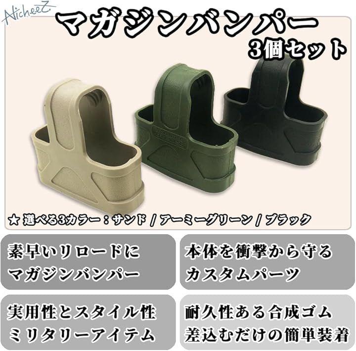 「商品内容」マガジンバンパー3個セット 材質:合成ゴム カラー:ブラック/サンド/アーミーグリーン 重量:約16g