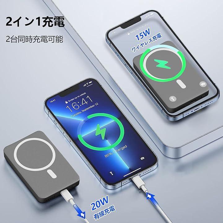 「いつでもどこでもフル充電」このモバイルバッテリーのワイヤレス充電は最大15Wに対応、USB-Cの有線接続の場合は最大20Wの充電に対応。