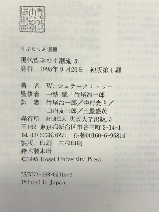 Main Currents in Contemporary Philosophy 5: Wittgenstein's Later Philosophy, Mackie's Ethics and Philosophy of Religion (Libraria Sensho) Hosei University Press W. Steeckmuller
