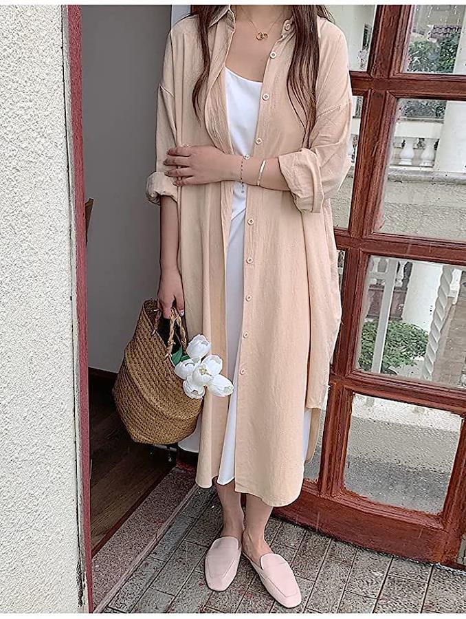 ・すっきりした綿素材が特徴の2wayシャツワンピース・ワンピースにも羽織りにもなる優れもの・