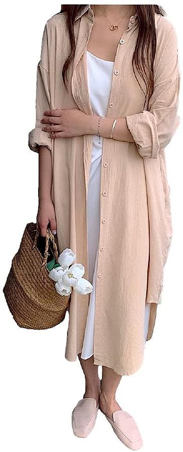すっきりした綿素材が特徴の2wayシャツワンピース・ワンピースにも羽織りにもなる優れもの・