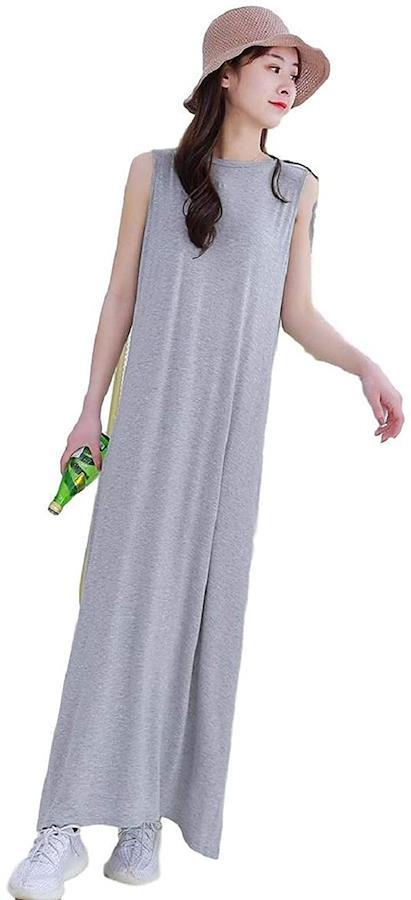 マキシ丈なので、腰回りがカバーでき、体型カバーにもなります。