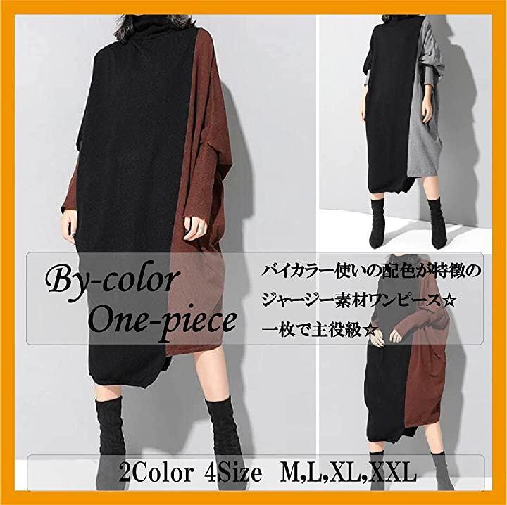 ・バイカラー使いの配色が特徴のジャージー素材ワンピース*一枚で主役級のワンピース。これからの季節に*