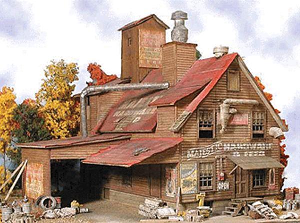 Majestic Hardware and Feedレーザーカットの木製キット、ホワイトメタルパーツも入っています。完成時のサイズは、約10.2 x 12.7cm。写真は塗装済み完成作例で、情景に組み込んだ状態。人形や車輛は付属しません。