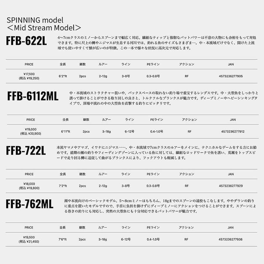 さまざまな渓流に対応できる5”3’フィート。近距離だけでなく、ロングレンジ攻略にもレングスを生かして流れの向こう側を狙うことができます。しっかり曲がり込むブランクスは、キャストのしやすさと魚を掛けた時の喜びをより一層楽しめます。4~5cmクラスのシンキングミノーだけでなく、フローティングタイプのミノーや巻物にも対応します。