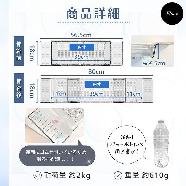 「商品サイズ」・伸縮前:縦18cmx横56.5x高さ5cm・伸縮後:縦18x横80cm高さ5cm
