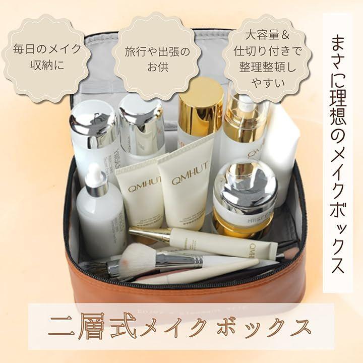 大容量設計で、ファンデーションやリップ、ブラシ、スキンケアアイテムなどをすっきり整理できる。