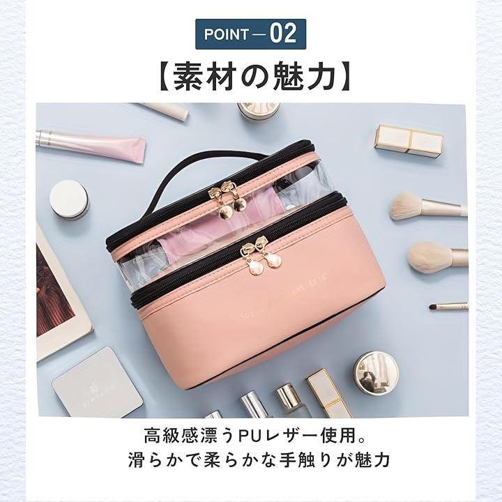「商品特徴」コンパクトなのに大容量。二層設計で収納力も抜群の化粧ポーチ