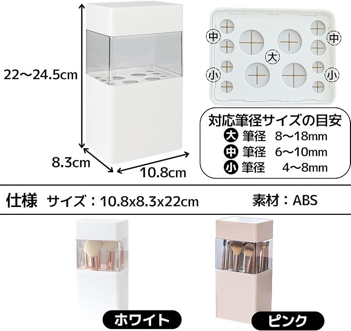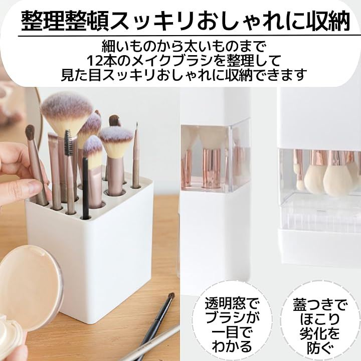 「整理整頓、スッキリおしゃれに収納」 細いものから太いものまで12本のメイクブラシを整理して、見た目スッキリ、おしゃれに収納できます。