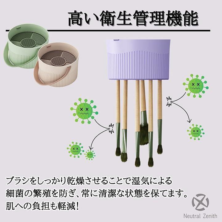 「メイクアイテムをまとめて管理」メイクブラシだけでなく、スポンジやパフなども洗浄でき、メイク用具全体を一元管理できます。