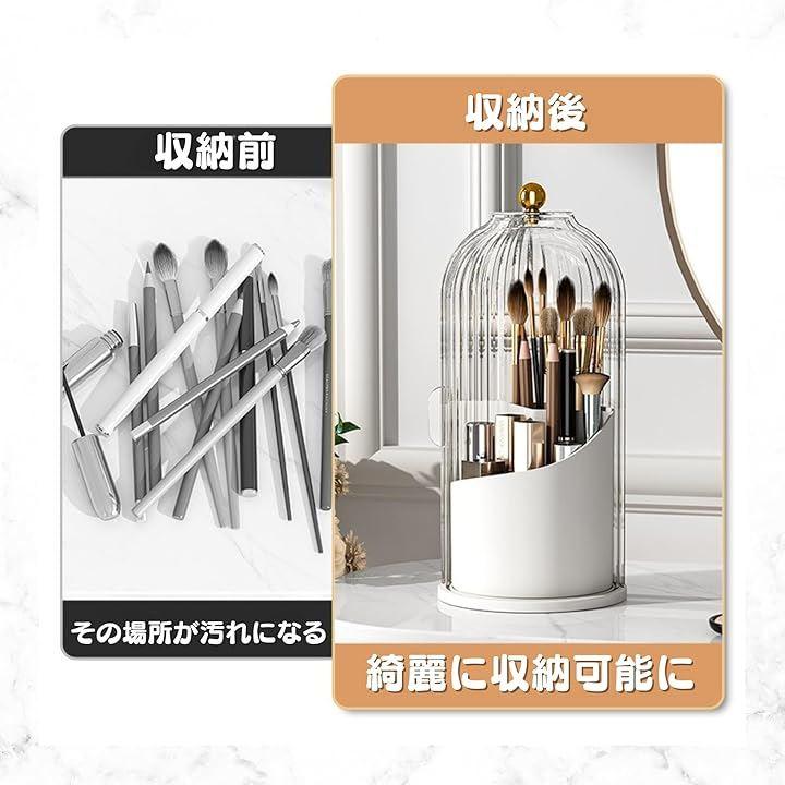 「360°回転で使いやすさ抜群」このメイクブラシケースは360°回転機能を備えており、必要なブラシをすぐに取り出せます。
