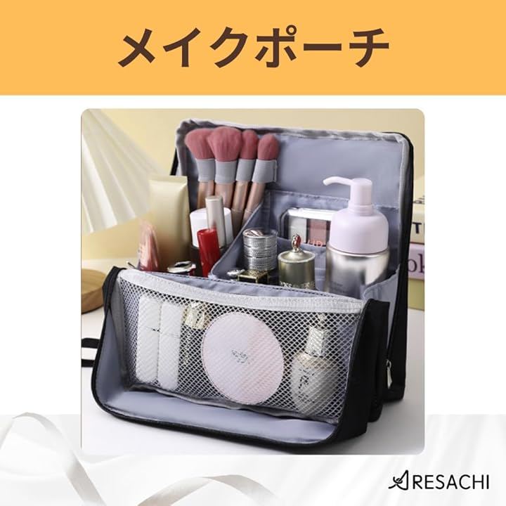 「すっきり整理できる多機能ポーチ」仕切りがつているため、ケーブルやモバイルバッテリー、文房具やコスメなど、さまざまなアイテムを分けて収納しやすくなっています。