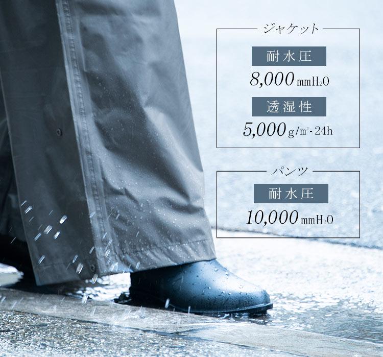 ■素材【ジャケット】ポリエステル 100% / ポリウレタン透湿コーティング【パンツ】ポリエステル 100% / ポリ塩化ビニル引き