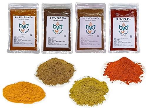 インドカレーを作るために必要な基本となる3種のスパイス、ターメリックパウダー・クミンパウダー・コリアンダーパウダーにチリパウダー(カイエンペッパー)を加えたセットです。4種類 のスパイスがそろえば スパイシー な スパイスカレー が作れます。