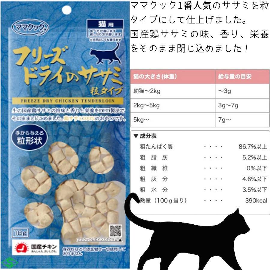 ママクック1番人気のササミを粒タイプにして仕上げました。国産鶏ササミの味、香り、栄養をそのまま閉じ込めました!