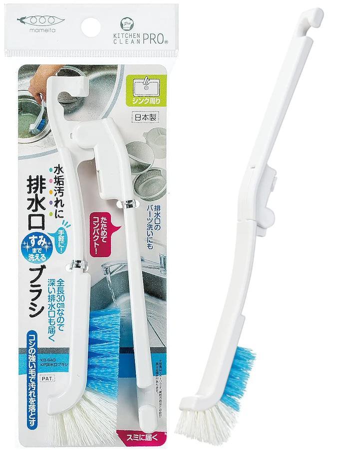 ●ハンドルの先端までブラシがあるのでスミまで洗うことができます。●全長が30cmありますので、排水口の奥に手を入れなくても届きます。●コンパクトに収納できる折り曲げハンドルです。●汚れをしっかり落とすポリプロピレン毛を使用しています。●排水口、排水口パーツに。 サイズ:幅2cm×奥行3.5cm×高さ31cm 原産国:日本 カラー:ホワイト・ブルー 汚れをしっかり落とすポリプロピレン毛のブラシです。 排水口の奥に手を入れなくても汚れに届きます。