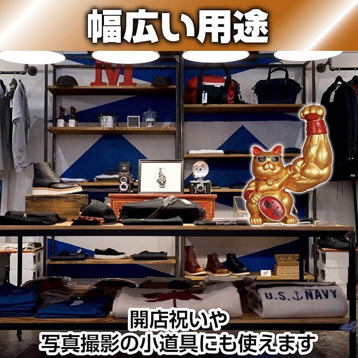 マッチョ招き猫、幅19x奥行き12x高さ25cm、樹脂、ゴールド*モニターの環境により、色の見え方に若干差が生じる場合がございます。