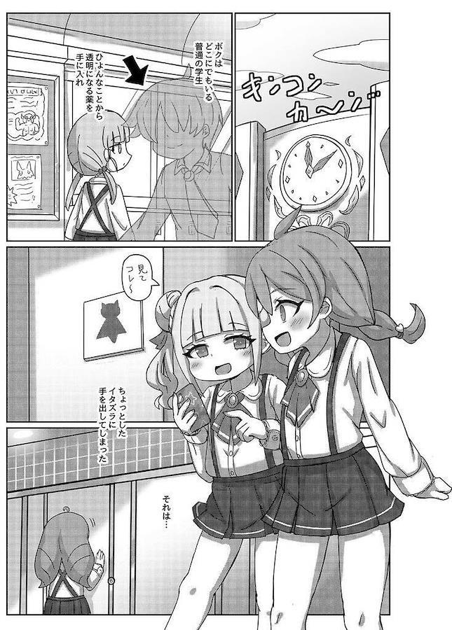 ※この商品は、制作サークル様の許可を得て代理販売しています。====================透明になって学校の女子トイレに忍び込む男の子の漫画、第二弾です。登場する女の子はサブキャラ含め全5名です。※キャラ同士の行為の描写などはありません。