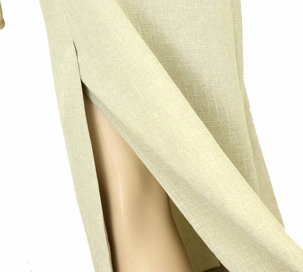 片側スリットが入っておりタイトワンピースでも足さばきしやすく、エレガントなデザインでございます。