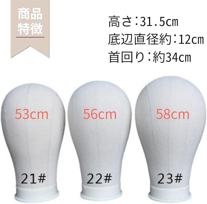 「商品内容」高さ:31.5cm 底辺直径約:12cm 首回り:約34cm 頭部3サイズ:21インチ:53cm/22インチ:56cm/23インチ:58cm 重さ:約420g