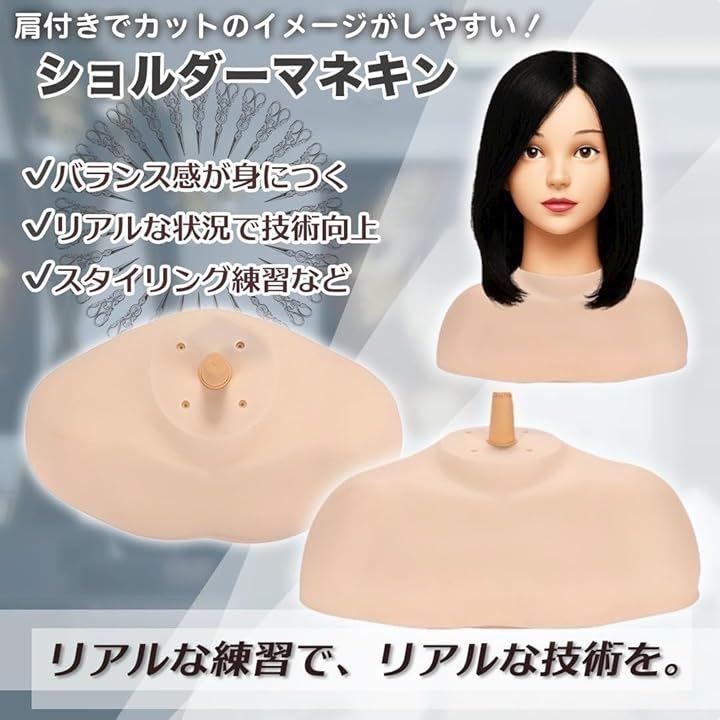 「商品の特徴まとめ」 ・肩付きトルソー構造でリアルな髪の落ち方を再現 ・差込式で簡単装着(約22mm径対応) ・マネキンヘッドの安定性を高めるベースとしても活躍 ・美容学校・サロン・自宅など幅広く使用可能 ・肩パーツ単体販売(ウィッグマネキン別売)