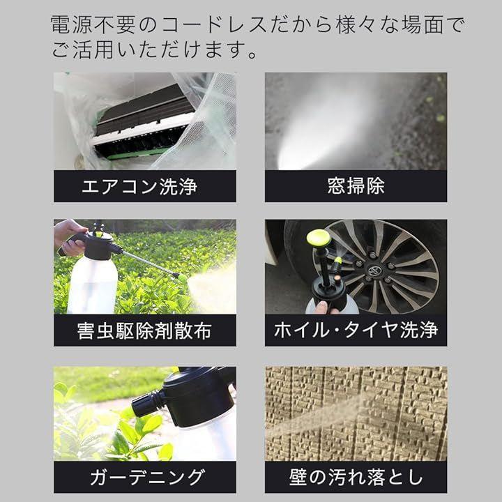 「様々なシーンで活躍」自宅の掃除用、床掃除、窓掃除、園芸、ガーデニング、水やり、農薬・薬剤・車、ホイールの洗車、アウトドア、道具や工具の洗浄、エアコン・室外機など様々なシーンで大活躍します。