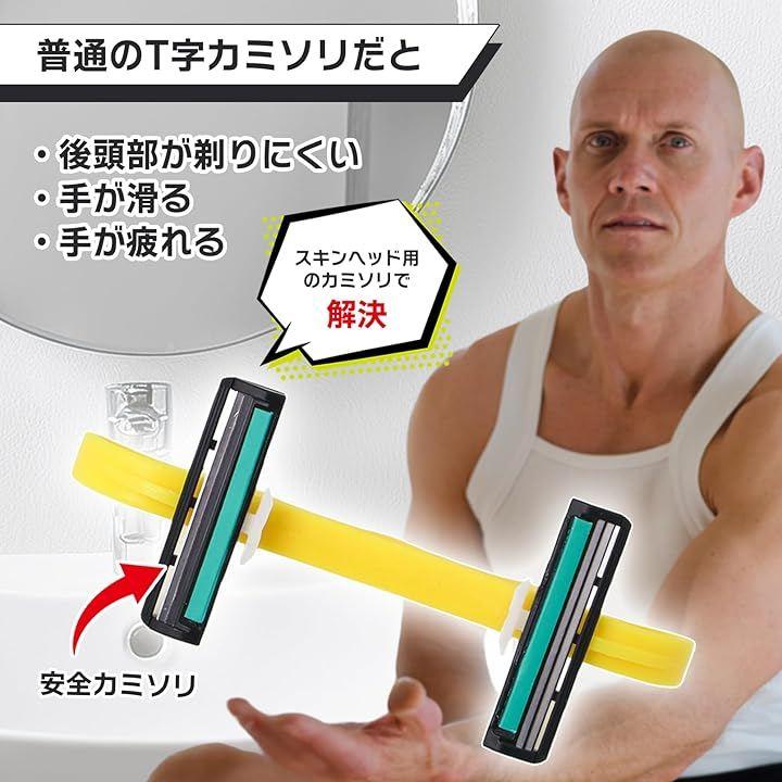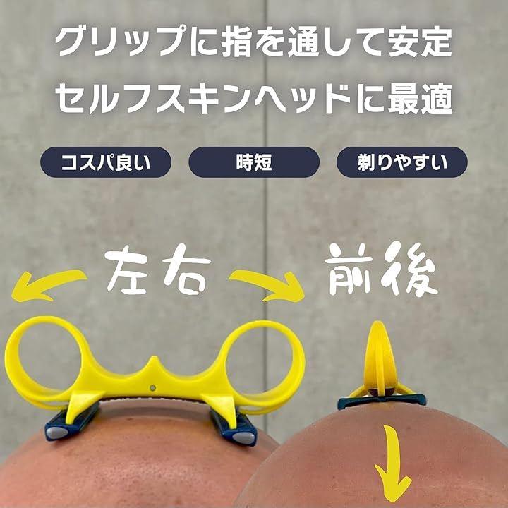 普通のT字カミソリでは届きにくい後頭部まで剃りやすい設計で、セルフスキンヘッドを続けている方におすすめです。