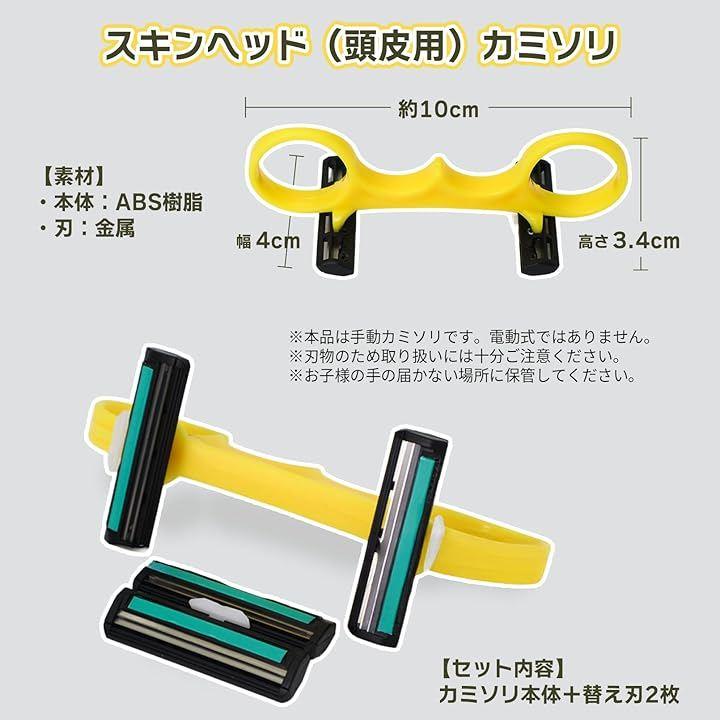 「商品内容」スキンヘッド(頭皮用)カミソリ本体+替え刃2枚「サイズ」約10x4x3.4cm「素材」本体:ABS樹脂/刃:金属*本品は手動カミソリです。