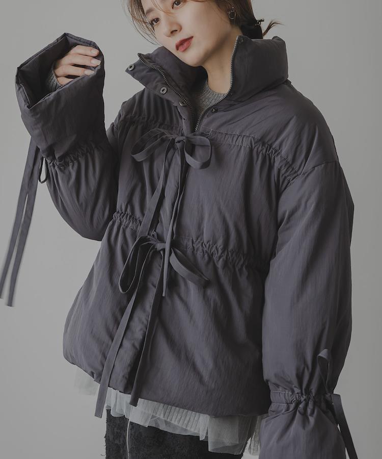 ・フロントのWリボンでフロントのギャザー分量を調節できます