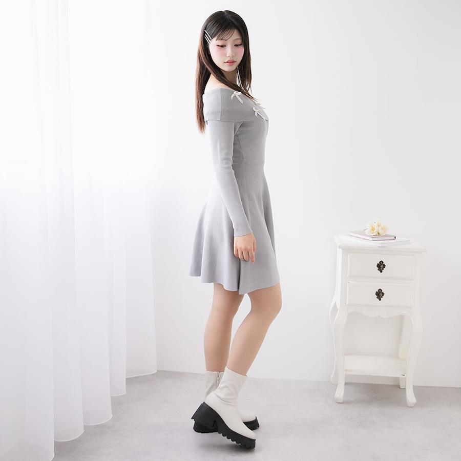 ヘルシーな肌見せが叶うオフショルニットワンピースのご紹介。
