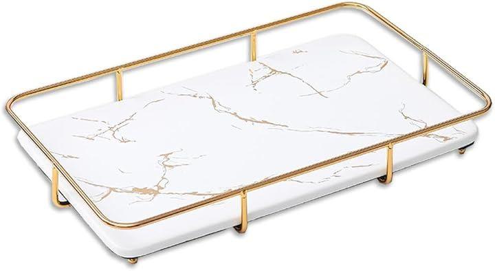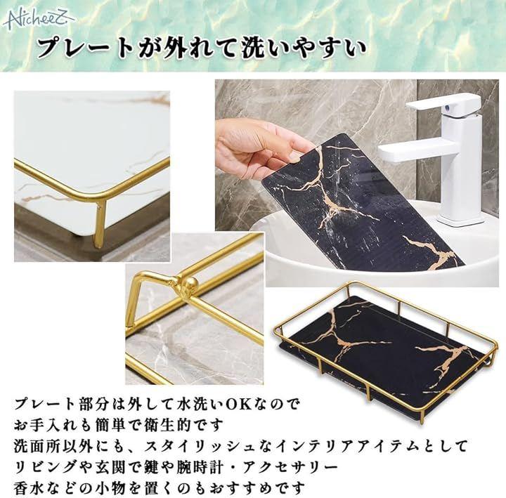 「大理石柄のモダンな収納トレー」大理石柄プレートとゴールドフレームの組み合わせがオシャレな洗面台収納トレーです。