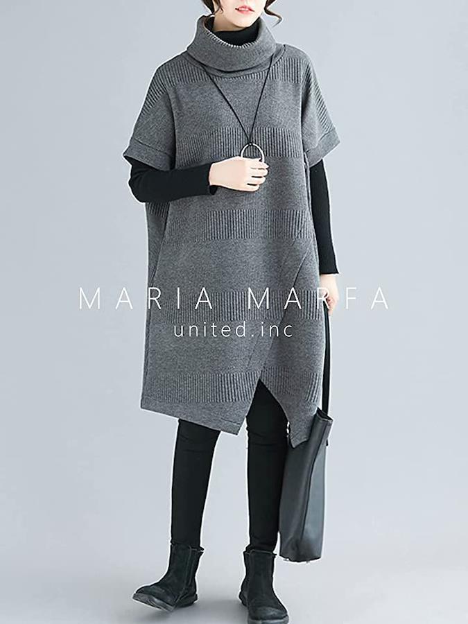 緩めのタートルネックは首回りをスッキリ魅せ、小顔効果も期待できます・ 両サイドには便利なポケット付きで小物や携帯、鍵などを入れられるので、手ぶらスタイルを可能にしてくれるデザイン性と機能性を兼ね揃えた大人可愛いチュニックワンピース・ インナーは付属していないので、お手持ちのインナーと重ね着して、コーデをお楽しみください・1枚でもこなれた大人女子コーデがキマる、着回し力に優れたロングシーズン活躍アイテムです。