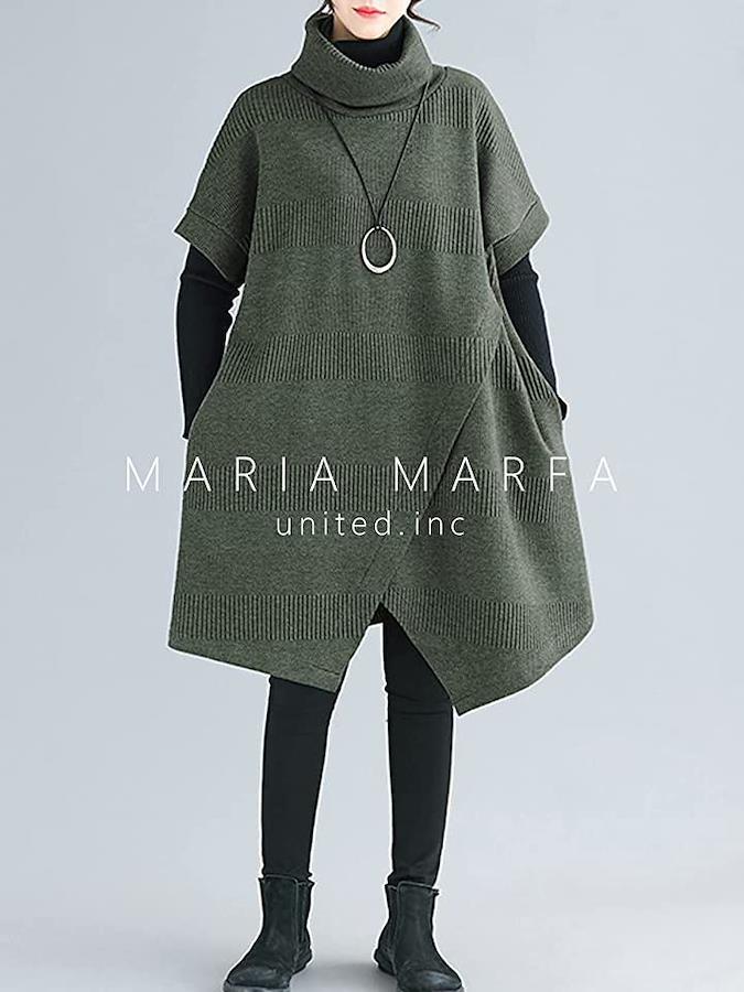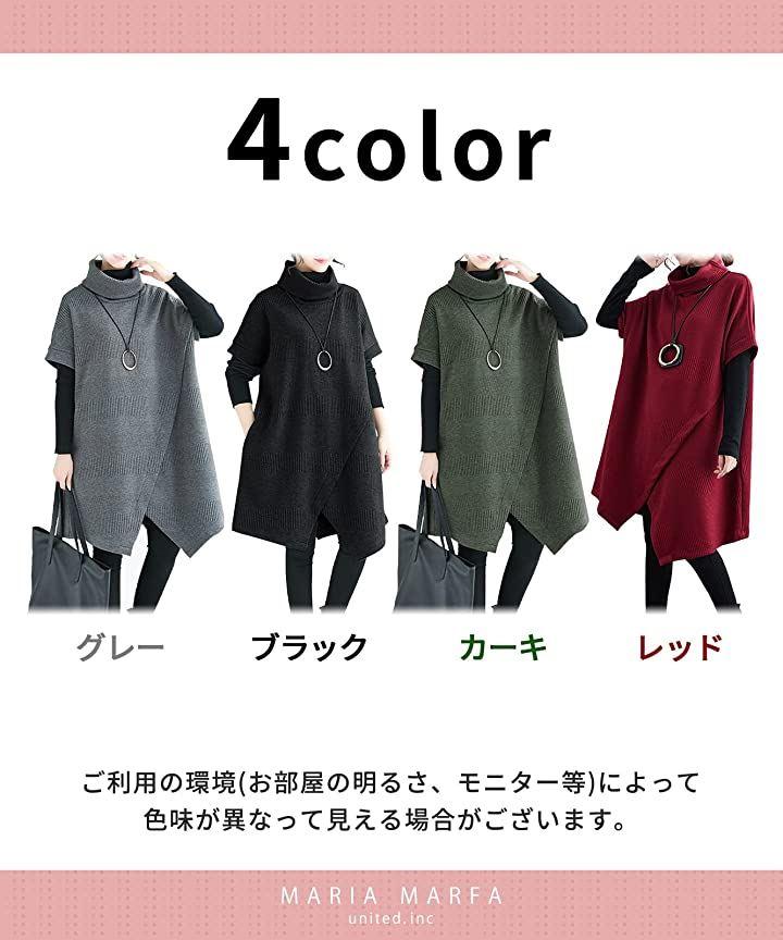 緩めのタートルネックは首回りをスッキリ魅せ、小顔効果も期待できます・ 両サイドには便利なポケット付きで小物や携帯、鍵などを入れられるので、手ぶらスタイルを可能にしてくれるデザイン性と機能性を兼ね揃えた大人可愛いチュニックワンピース・ インナーは付属していないので、お手持ちのインナーと重ね着して、コーデをお楽しみください・1枚でもこなれた大人女子コーデがキマる、着回し力に優れたロングシーズン活躍アイテムです。
