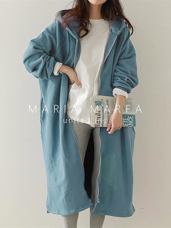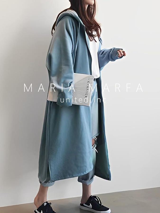 パーカーアイテムとしてカジュアルな雰囲気を持ちながらも、スリットが入っているのでチュールスカートやキレイめスカートと合わせても、可愛いカジュアルスタイルに。
