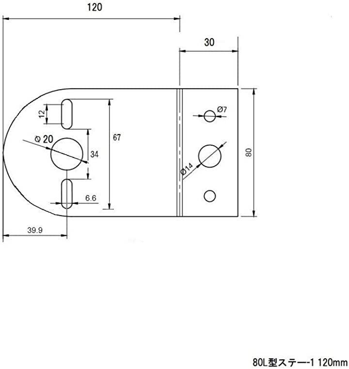 ・サイズ:幅80mm、長さ120mm、折り曲げ部分:タテ幅 30mm ヨコ幅 80mm 取付け部穴:3ヶ所 マーカーボルト幅:67mmまで対応