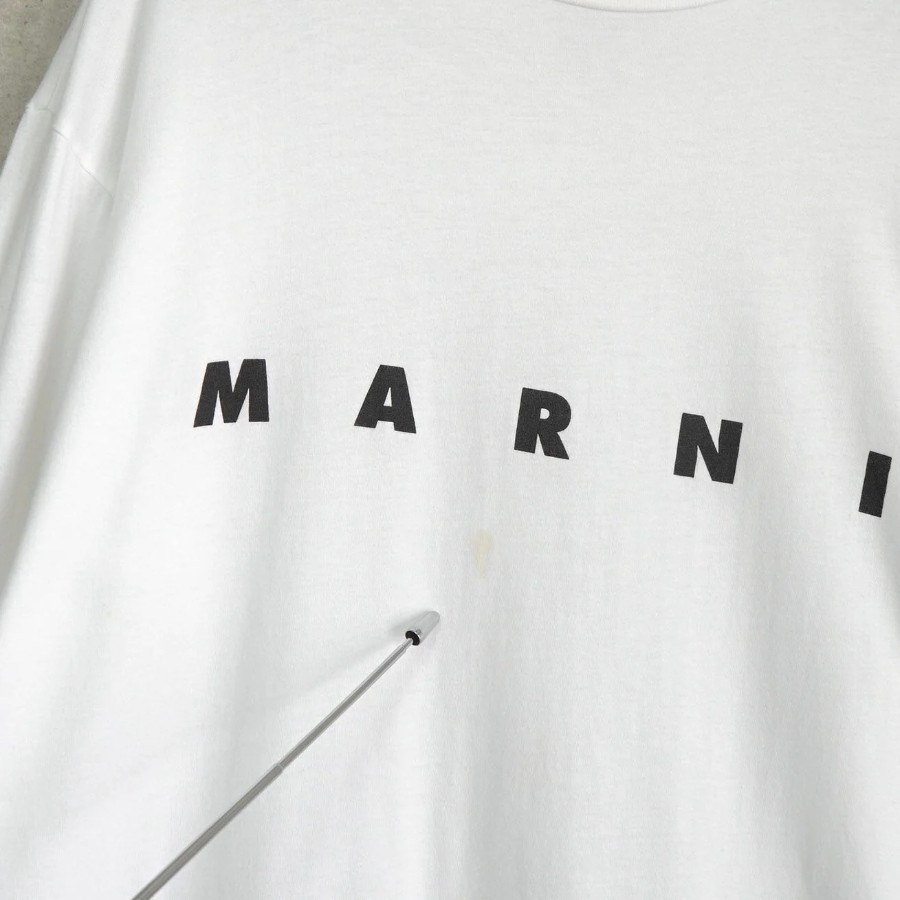 マルニ ロゴ ロンT 長袖Tシャツ ホワイト | Brand: MARNI | Category: T-shirt / Top | Color: White | Material: コットン100% | Condition: Good | Condition Notes: フロントにシミ汚れ、首元に多少の黄ばみがみられます。(タグより後の写真参照) | Size: 表記サイズ:40 目安サイズ:メンズXL〜2XL / レディース2XL〜3XL 程度 ※あくまで目安ですので参考程度でお考えください 肩幅:約53cm 身幅:約57.5cm 着丈:約80.5cm 袖丈:約60cm | Details: イタリア製