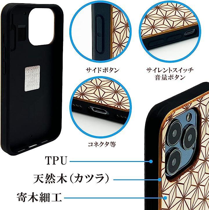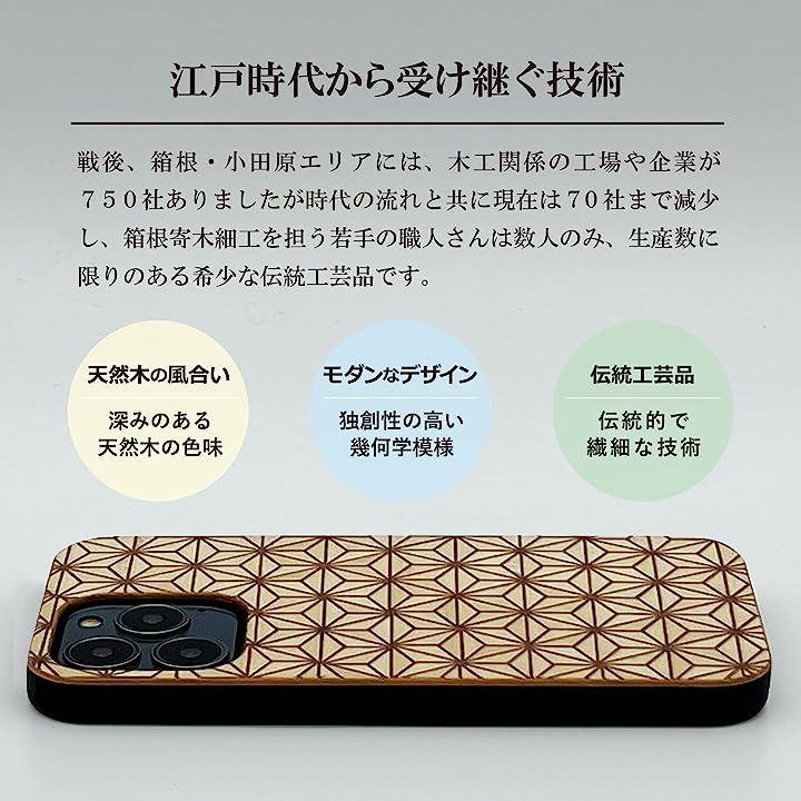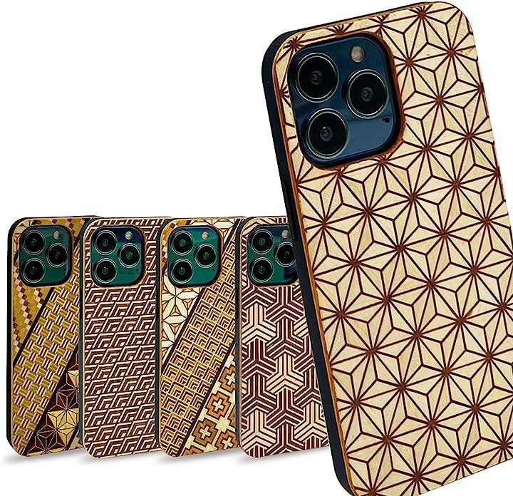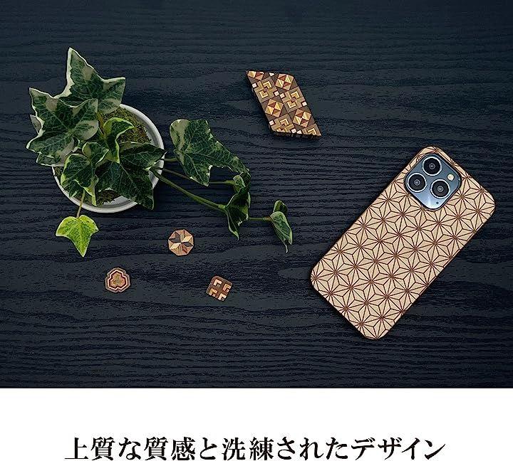 Marquetry smartphone case for iPhone, made of wood and TPU, shock-resistant, made in Japan, with a modern hemp leaf design.