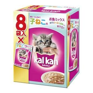 本製品1袋とドライ製品を混ぜて与えた場合の1日の給与量の目安(カルカンドライ子ねこ用の場合)生後4-8週間体重0.8kg:ドライ35g、生後-12週間体重1.2kg:ドライ45g、生後-16週間体重1.8kg:ドライ55g、生後-32週間体重3.1kg:ドライ65g、生後-52週間体重3.5kg:ドライ40g