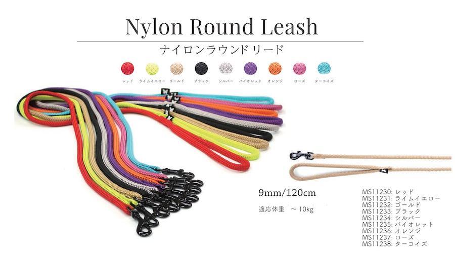 ナイロン製で耐久性抜群のリードです。色は鮮やかな9色展開。9㎜/120㎝ 適応サイズ~10kg