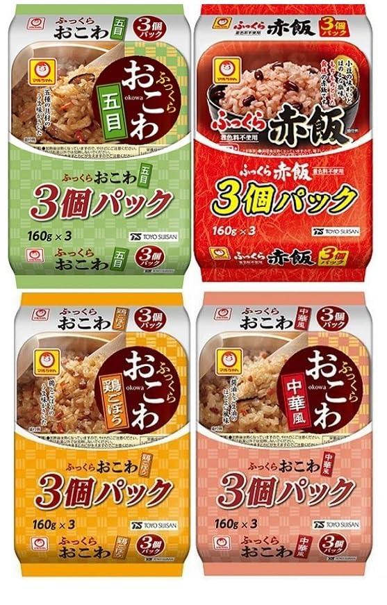 内容:五目おこわ / とりごぼうおこわ / 中華風おこわ / 赤飯 全4種類×3個パック 全12食セットになります。