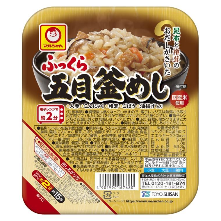 レンジでチンするだけの簡単調理で忙しい方にもオススメ!6種類の味があるので、その日の気分に合わせて美味しくいただけます!【ふっくら 五目釜めし】人参・こんにゃく・椎茸・ごぼう・油揚げの彩り豊かな5種の具材と、昆布と椎茸のおだしをきかせた五目釜めしです。【ふっくら とり釜飯】国産米と鶏肉を使用し、風味豊かに仕上げたとり釜めしです。ごぼうを加え、味にアクセントを付けました。【ふっくら 赤飯】もち米と小豆をふっくら蒸し上げました。着色料を使用せず、小豆の煮汁だけで色付けした赤飯です。【ふっくらおこわ 中華風】もち米とうるち米をブレンド。醤油とごま油の風味が程よい中華ちまき風のおこわです。【ふっくらおこわ 五目】もち米とうるち米をブレンド。人参・こんにゃく・椎茸・油揚げ・ごぼうの5種の具材が入りダシの香りが効いた優しいお味です。【ふっくらおこわ 鶏ごぼう】もち米とうるち米をブレンド。鶏肉に、ごぼうと人参を加え、優しい味つけに仕上げました。【重要】メーカーによる商品リニューアルに伴いパッケージ(内容量も含む)変更が行われた場合、新パッケージでお届け致します事ご了承願います。