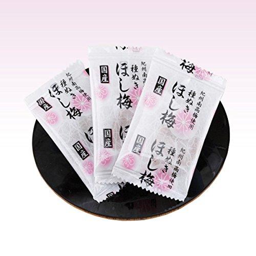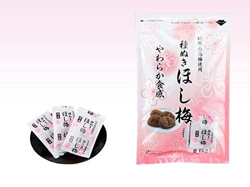 紀州産南高梅だけを使用し、丁寧に種を取り除き、甘く味付けして食感を残したまま乾燥させました。紀州南高梅の味が凝縮された一品です。種なしでやわらかい食感なのでお子様からお年を召した方まで手軽においしくお召し上がりいただけます。個別包装でおやつやお茶うけにぴったりです。・無選別の規格商品の為、熟度の違いが関係している可能性がございます。(完熟かそうでないもの、梅の実の差があり得ます)・製造過程で乾燥が約10時間前後ありますが せいろの上段か下段か、あるいは外側か内側かということでも硬度には違いが生じる可能性がございます。・乾燥後は製造ロットごとで乾燥した梅を大小固柔、偏らないように混ぜて袋詰めしております。【重要】メーカーによる商品リニューアルに伴いパッケージ(内容量も含む)変更が行われた場合、新パッケージでお届け致します事ご了承願います。
