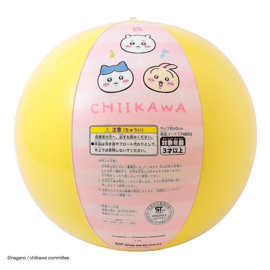 ちいかわたちが勢揃いした柄が可愛いビーチボールです。空気注入前サイズ約40cm。(空気を入れた時のサイズ約28cm。)