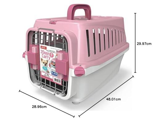 天面ドアから抱き上げられるペットにやさしい構造です。取り外せるインナートレイ付き。軽くて丈夫、掃除・組立簡単。シートベルト固定機能付き。IATA(国際航空運送協会)の基準を満たしています。
