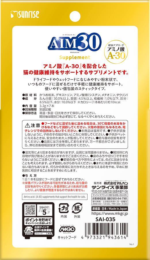 愛猫の健康寿命を保つアミノ酸「A-30」を配合した猫の健康維持をサポートするサプリメントです。商品モデル番号: 4973321943614パッケージ重量: 0.06 kg