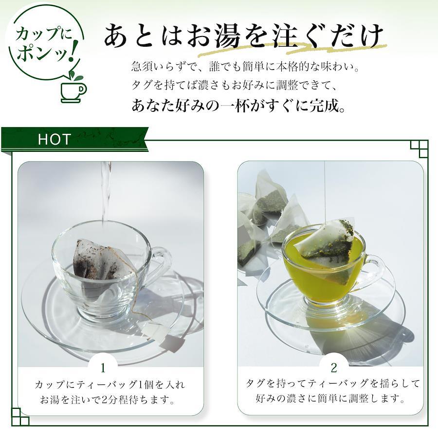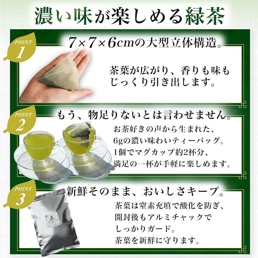 【原材料名】ほうじちゃ茶(静岡県産) 味にこだわった濃くて美味しいほうじ茶ティーパック30個入り【内容量】1袋180g(6g×30個入り)(通常の2倍=60包分相当)【静岡県産の茶葉を使用】ティーバッグ原料用に抽出を良くするためにカットし色、味、香り、比重のバランスが最適になるようにブレンドしました。ブレンドした原料はセラミックほうじ茶焙煎機で丁寧に焙煎しています。【たっぷり6gの濃い緑茶ティーバッグ】7×7×6cmの大型立体構造の茶葉の香り立つティーバッグ。1個でマグカップ約2杯分。満足感もひとしおです。【急須がなくても、手軽に本格】お湯を注ぐだけで、豊かな香りと旨みが広がり、タグを使って、お好みの濃さに仕上げられます。心までほどける、丁寧なお茶時間をお楽しみください。【日本茶インストラクター監修】ブレンドした原料は同じように見えてもまったく同じものはありません。そのため日本茶インストラクターが原料の特徴を見極め季節ごとに気温、湿度、焙煎時間、焙煎温度など微調整しながら焙煎機に付きっきりで火入れしています。【ローカフェイン】 ローカフェインなので、就寝前のリラックスタイムやお子様、ご年配の方にもおすすめです!麦茶にちょっと飽きちゃった・・・そんな時には、たまにはほうじ茶もいかがですか。【季節や気分によって楽しめる】ほうじ茶は季節や気分によって楽しむことができ、冷たいアイスほうじ茶から温かいほうじ茶までバリエーション豊かです。濃いお茶なので、牛乳を加えて簡単にほうじ茶ラテを作ることもできます。【日本の伝統を感じる】ほうじ茶は日本の伝統的なお茶のひとつであり、飲むことで日本の文化や風土を感じることができ、それがおいしさにも繋がっています。【免責事項】メーカーによる商品リニューアルに伴いパッケージ(内容量も含む)変更が行われた場合、新パッケージでお届け致します事ご了承願います。