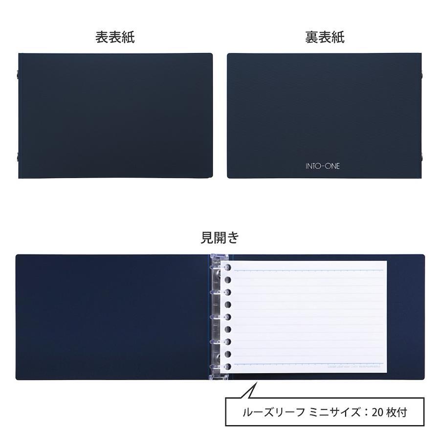【INTO-ONEについて】よりスリムで軽くなった、持ち運びに便利なミニサイズバインダーです。いろいろなリフィル(別売)を組み合わせて自分好みにカスタムができます。丈夫な不透明ポリプロピレン表紙の落ち着いた色と素材感は、学校や仕事、普段使いのメモなど、様々なシーンで活躍します。ウラ表紙には、アクセントとなる箔押し(シルバー)のロゴがついています。A4・B5・A5サイズの多穴バインダーに対応するルーズリーフミニ20枚付きです。